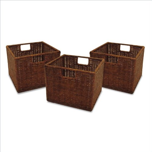 These durable storage baskets are made from wicker and wire, designed to be used with Winsome's Milan Collection of shelving, all available with a matching antique walnut finish. Add these decorative baskets to the Storage Bench, 3-Tier Long Storage Shelf, 4-Tier Medium Storage Shelf, and 5-Tier Tall Storage Shelf. Mix and match with Winsome's Foldable Beige Fabric Baskets for a distinctive custom look.Dimensions: 9" H x 10" W x 11" D